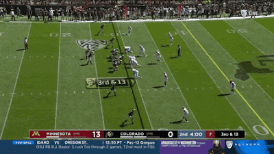 Minnesota's first four sacks of the season came in part because Rossi dropped eight defenders on passing downs against a below-average passer. But the Gophers were also in the backfield a lot in general, totaling 12 pressures on 30 dropbacks (per Pro Football Focus). Against a flawed offensive line, Minnesota's pass rush looked sharp and bedeviled the Buffs on some pretty simple twists. Both of Thomas Rush's sacks came that way.